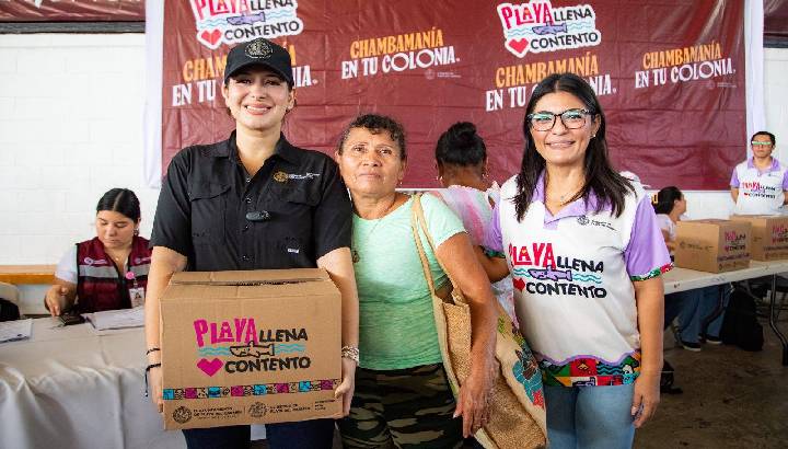 Durante el recorrido, entregó paquetes alimentarios del programa “Playa Llena, Corazón Contento”, considerado uno de los más exitosos de su administración por su impacto directo en la economía familiar.