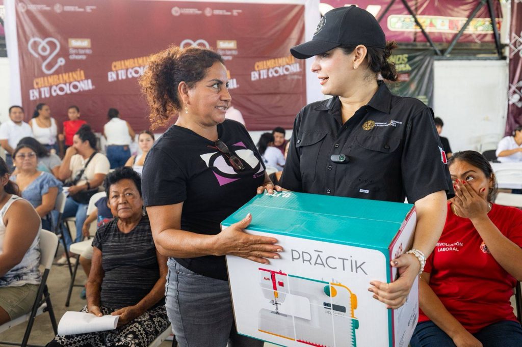 En el domo también se instalaron módulos de la Secretaría del Bienestar (SEBIEN) que, a través del programa Fábrica de Artes y Oficios (FARO) continuó con la entrega de máquinas de coser a mujeres playenses interesadas en capacitarse y fortalecer su economía familiar.