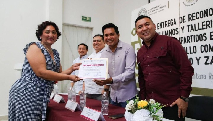 Asimismo, subrayó que la entrega de reconocimientos marca la conclusión de un periodo de capacitación y refrenda el compromiso del Ayuntamiento de Playa del Carmen con la continuidad de estos programas durante el año 2026, los cuales benefician anualmente a un promedio de 400 personas.