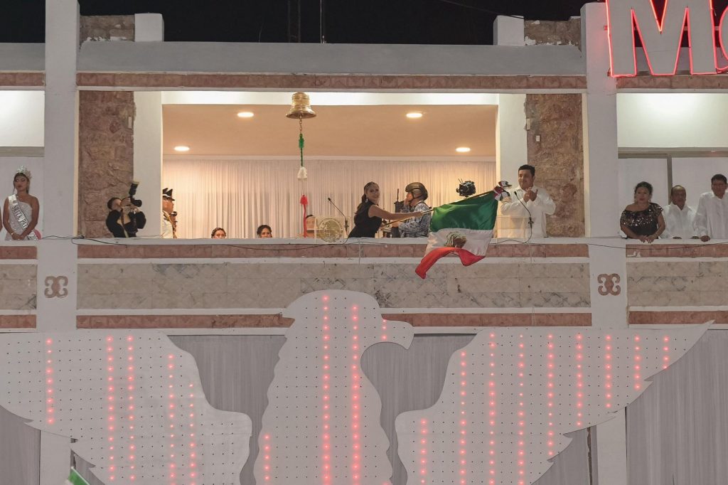 En punto de las 11 de la noche, como lo marca la tradición, la alcaldesa Mary Hernández, asomó al balcón del Palacio Municipal para honrar a las heroínas y los héroes de la Independencia.