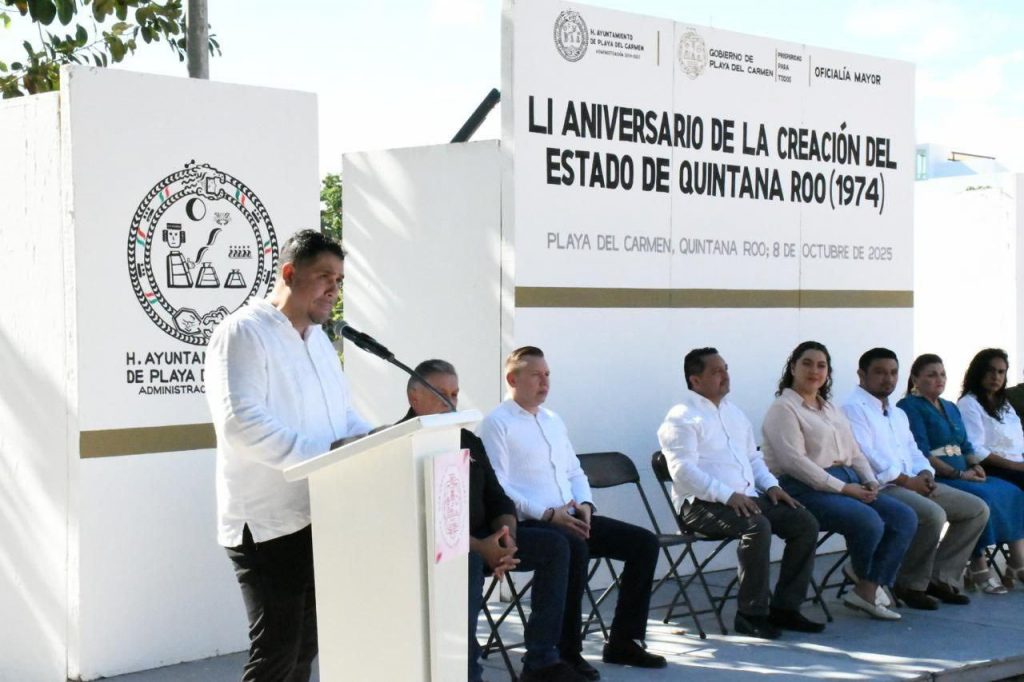 Con un acto cívico realizado en la Plaza 28 de Julio, el Ayuntamiento de Playa del Carmen conmemoró el 51 aniversario de la creación del Estado de Quintana Roo, resaltando la historia, fortaleza y desarrollo que han distinguido a la entidad a lo largo de más de cinco décadas.