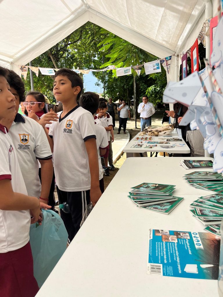 Durante el desarrollo del evento, niños de la escuela primaria Benito Juárez acudieron llevando residuos de PET, mismos que depositaron en el contenedor del programa permanente de acopio y reciclaje de este material, recibiendo la explicación y la importancia de contar con un mundo sin residuos contaminantes en el ecosistema.