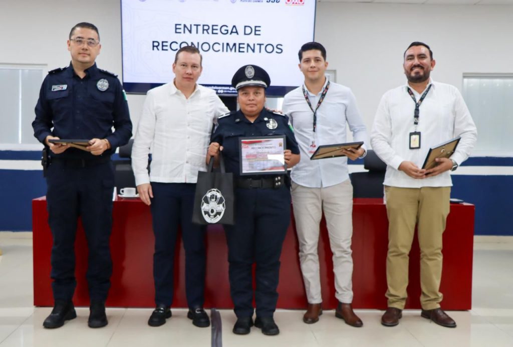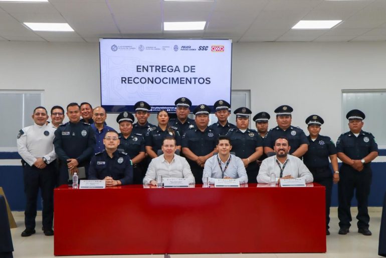 En el marco de las acciones impulsadas por la presidenta municipal Estefanía Mercado para fortalecer la seguridad y la coordinación con la iniciativa privada, la Secretaría de Seguridad Ciudadana Municipal SSC Playa del Carmen recibió un reconocimiento por parte de la cadena comercial OXXO a elementos de la Policía Municipal por su labor y compromiso en la atención de delitos contra comercios.