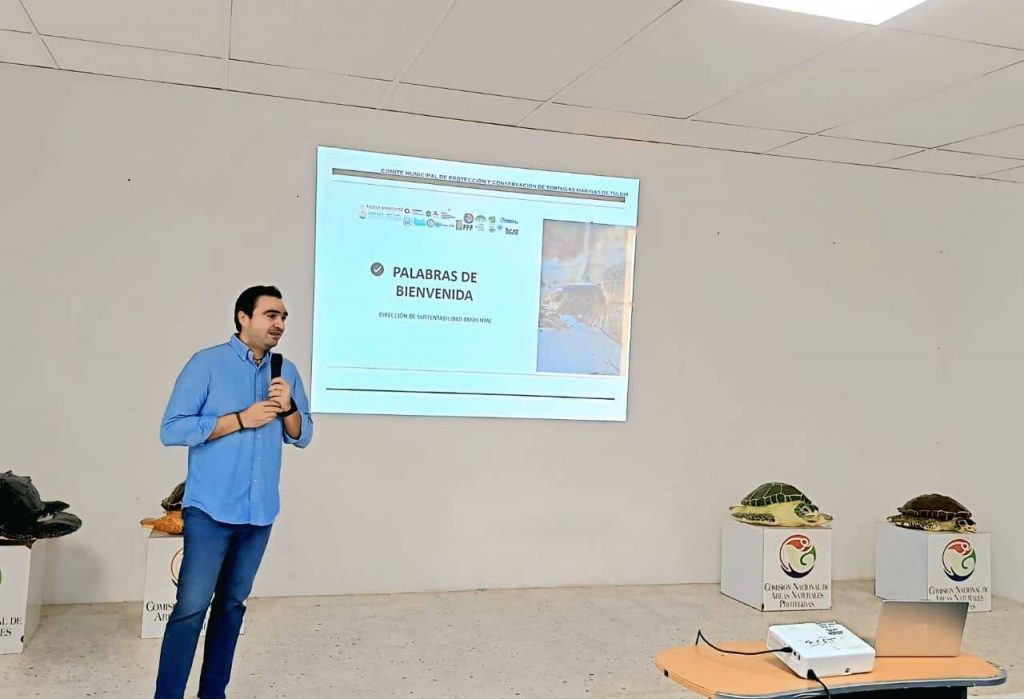 “Como bien sabemos, Tulum es el municipio en el estado con mayor arribo de tortugas marinas, nuestras costas siguen siendo las favoritas para esta especie en peligro se extinción, por ello la importancia del trabajo conjunto entre todos, el ecosistema es muy frágil y debemos cuidar todos los factores al rededor del proceso de arribo, anidación y nacimiento de las crías”.