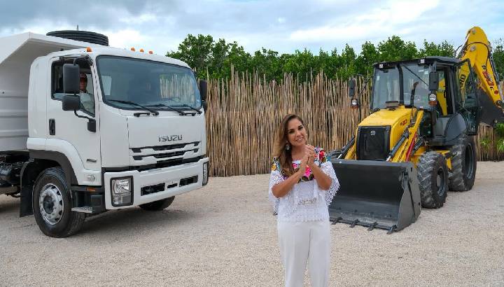 Mara Lezama informó que se trata de un camión de carga de 12 toneladas y una retroexcavadora, destinados exclusivamente a Mahahual, lo que permitirá agilizar y hacer más seguro el retiro del sargazo en la zona costera. “Este equipo es para ustedes, para seguir cuidando este hermoso destino que recibe con cariño a miles de visitantes”, señaló.