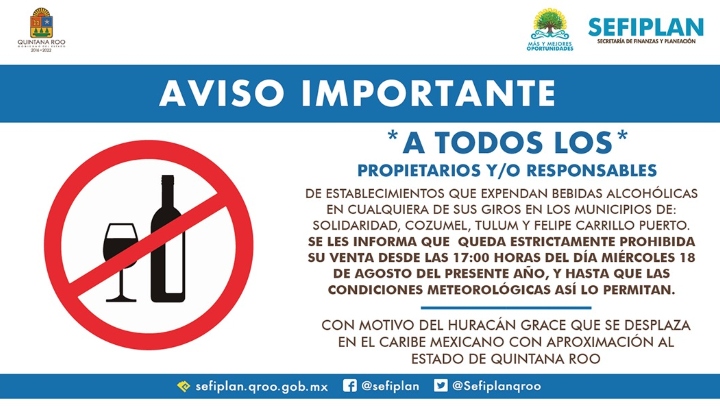 Principales Como medida de prevención, anuncia SEFIPLAN Ley Seca en 4 municipios de Quintana RooBy administrador 18 agosto, 2021 … Keep Reading