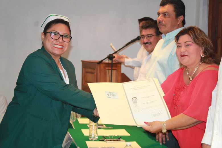 En su mensaje, Nelia Guadalupe Uc Sosa, directora general del Colegio Nacional de Educación Profesional Técnica del Estado de Quintana Roo, informó que 737 egresados de los siete planteles del CONALEP reciben cédula y título profesional como técnico-bachiller.