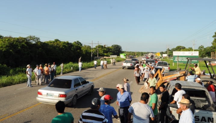Los ejidatarios se plantaron en la carretera que une a Chetumal con la ciudad de México desde las 7:00 de la mañana para exigir al gobierno federal  el pago inmediato de 90 hectáreas afectadas por la construcción de carreteras que hizo la SCT delegación Quintana Roo hace  ocho años.