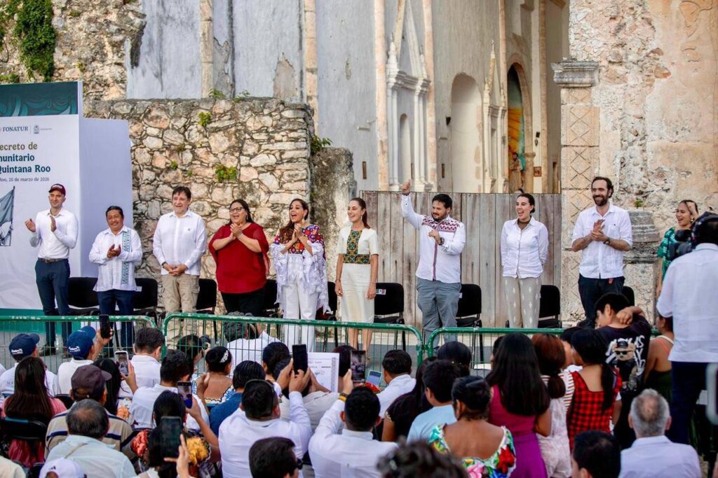 La Presidenta Municipal de Felipe Carrillo Puerto, Mary Hernández, acompañó a la Presidenta de la República, Dra. Claudia Sheinbaum Pardo y la Gobernadora del Estado, Mara Lezama Espinosa a la firma de la Declaratoria de Interés Nacional del Turismo Comunitario, celebrado en Tihosuco.