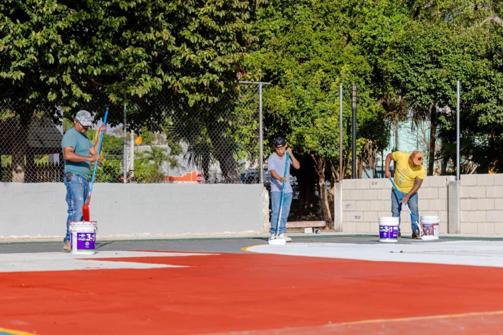 Por su parte, el director de Servicios Públicos, Edwin Camal, detalló que los trabajos contemplan la rehabilitación de la barda perimetral y la malla ciclónica, así como la aplicación de pintura antiderrapante en la cancha con el trazado de líneas para distintas disciplinas deportivas. Además, se realizará el cambio de aros, marcos y porterías, así como la rehabilitación de las gradas para mejorar las condiciones del espacio.