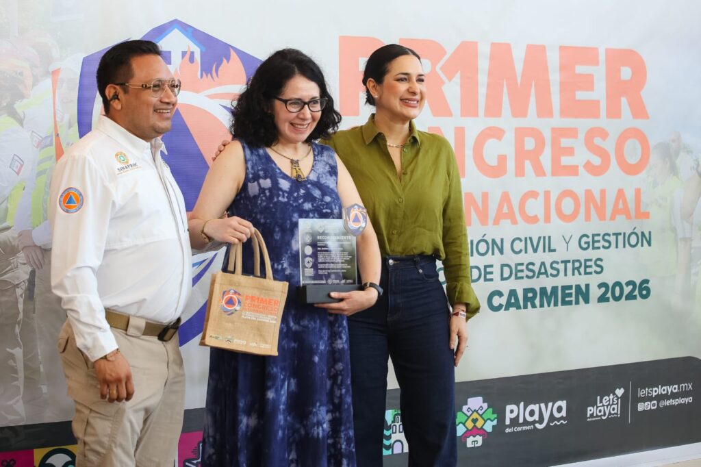 En un encuentro que refrenda el compromiso con la cooperación internacional y la construcción de comunidades resilientes, la presidenta municipal Estefanía Mercado entregó reconocimientos a especialistas de alto nivel que participaron en el Primer Congreso Internacional de Protección Civil y Gestión de Riesgos de Desastres, realizado del 25 al 27 de febrero en este destino del Caribe Mexicano.