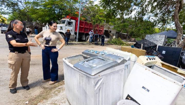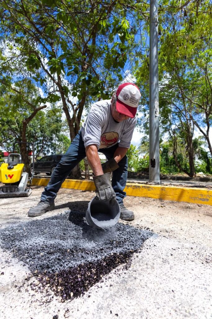Además, se realizaron acciones de saneamiento ambiental con la instalación de un punto de acopio en la avenida Hunab Ku y calle Ik, así como trabajos de bacheo sobre la avenida Hunab Ku, entre calle Balam y calle Tepich.