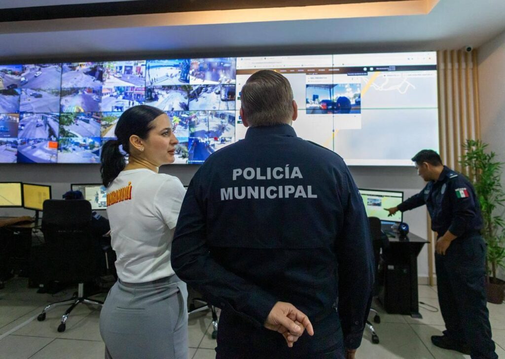 La presidenta municipal Estefanía Mercado, acompañada por el secretario de Seguridad Ciudadana Municipal (SSCM), Carlos Montesinos, realizó una visita al Centro de Control, Comando, Comunicación y Cómputo (C4), donde supervisó el funcionamiento del innovador sistema de vigilancia policial a través de cámaras corporales (bodycams).