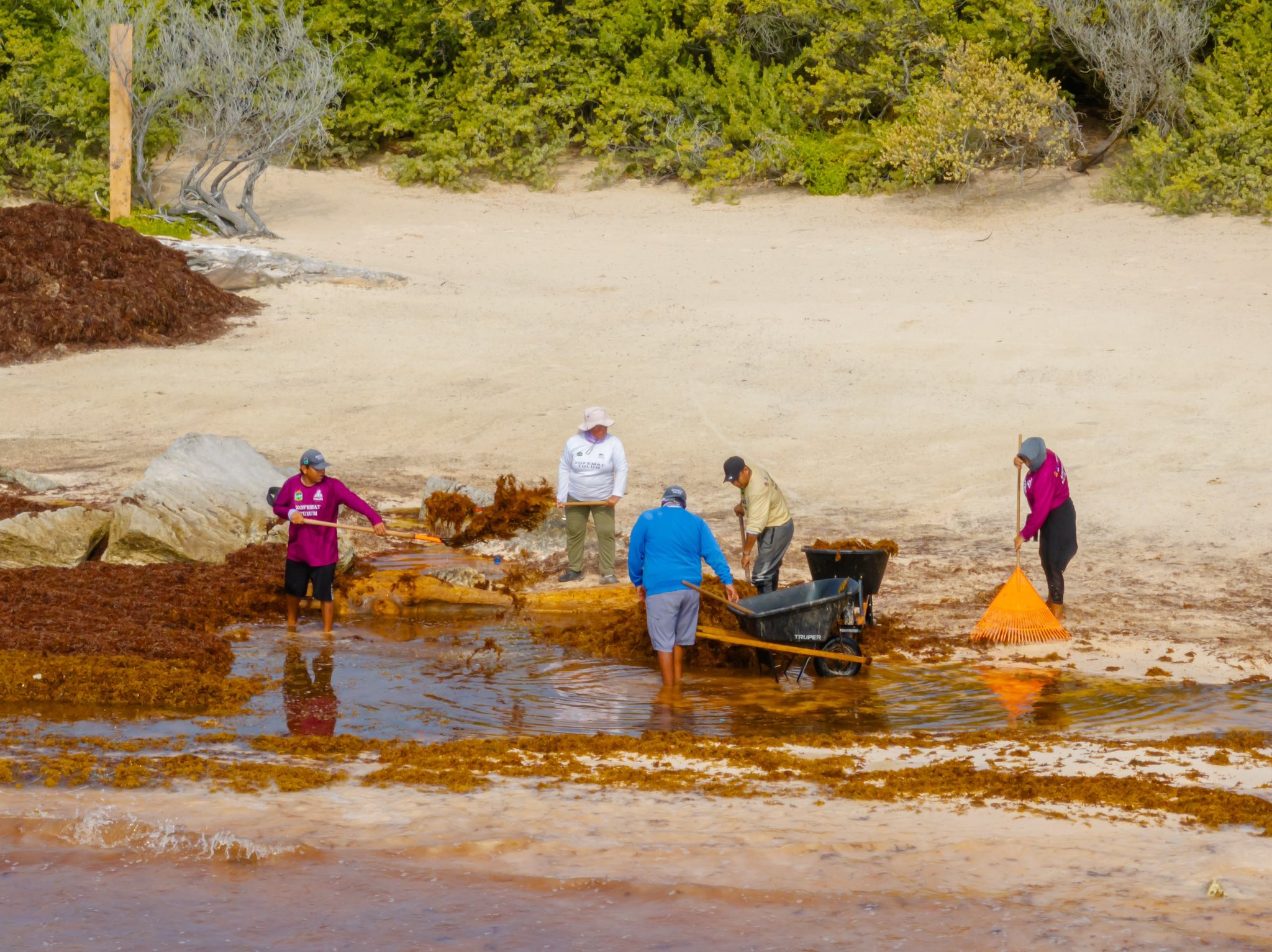 Detalló que, hasta el momento, el equipo de Zofemat ha recolectado 750 toneladas de sargazo, además de realizar en lo que va de marzo más de 100 viajes para el vaciado de los contenedores, resultados que reflejan el trabajo constante del personal operativo.