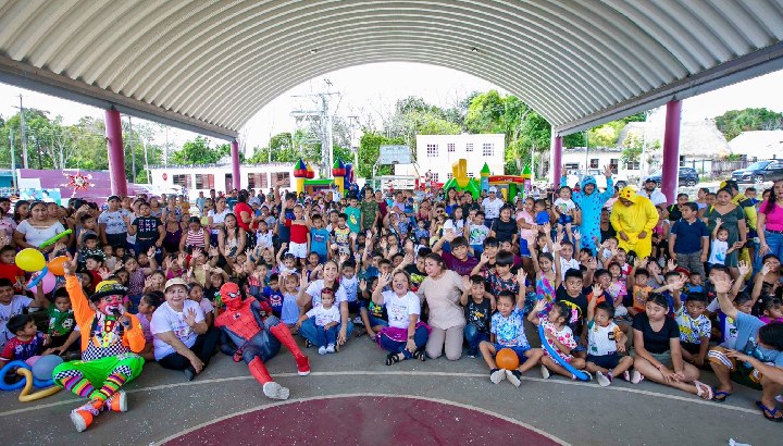 En la comunidad de Dzulá, la presidenta Mary Hernández encabezó el evento principal, que incluyó show infantil, música, juegos, dulces y regalos para niñas y niños asistentes, quienes disfrutaron de una jornada inolvidable.