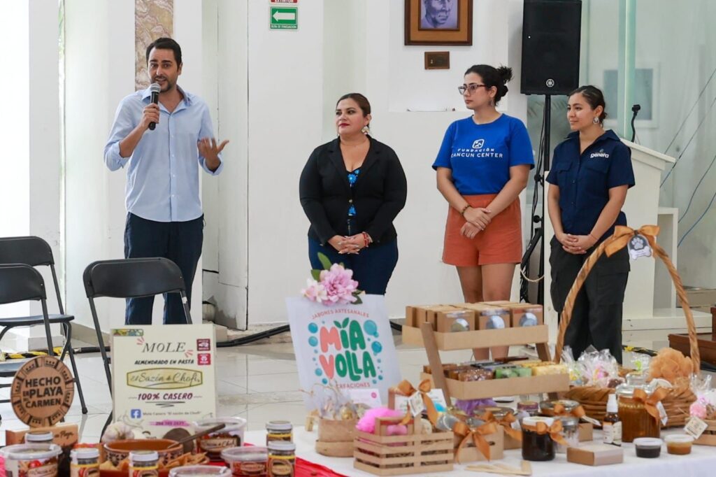El gobierno municipal que encabeza Estefanía Mercado refrendó su compromiso con el impulso a la economía local y el fortalecimiento del sector artesanal, al acompañar la presentación de productos de la marca “Hecho en Playa”, en coordinación con Fundación Genera y Fundación Cancún Center.