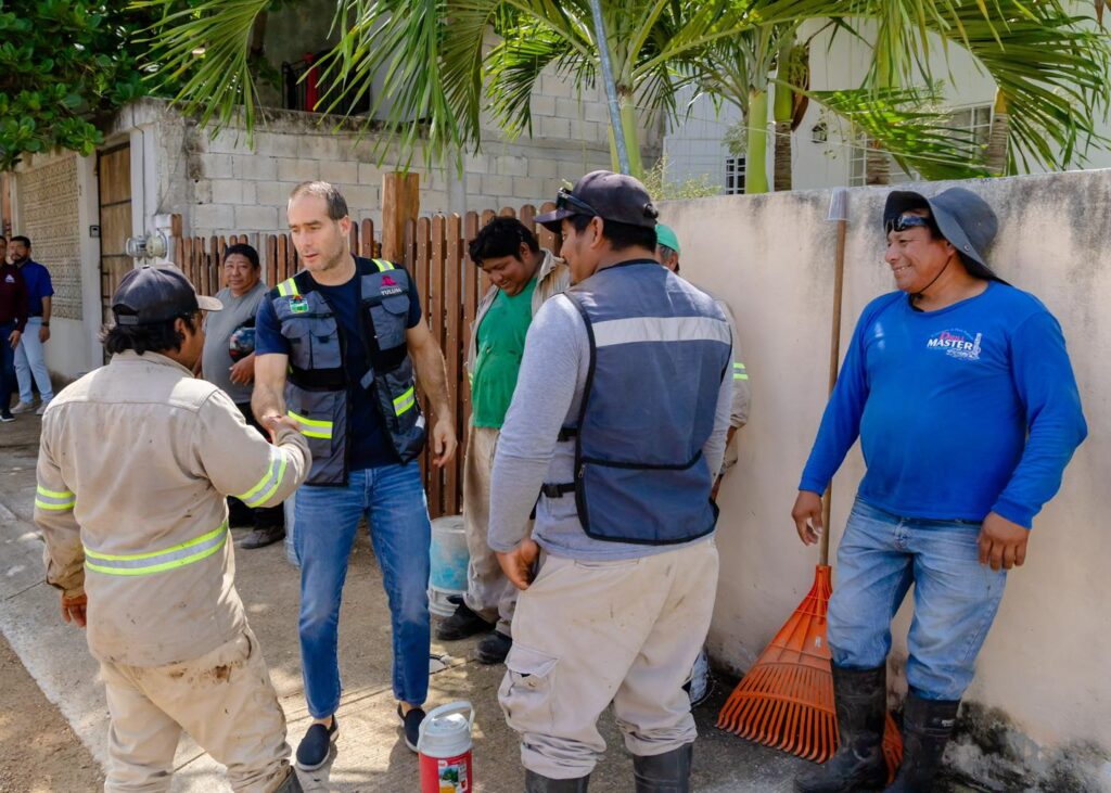 Como parte de las acciones preventivas ante la próxima temporada de lluvias, el presidente municipal, Diego Castañón Trejo, supervisó los trabajos de limpieza de pozos de absorción en la colonia Tumben Kaa, acompañado de las cuadrillas de Servicios Públicos.