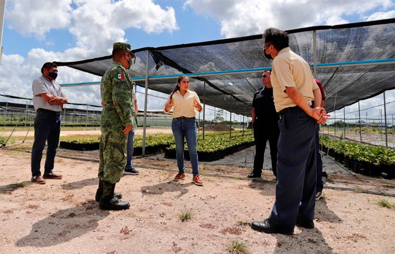 Actualmente el vivero militar ha abastecido al Gobierno Federal en distintas encomiendas que incluyen aparte de lo social, los proyectos de infraestructura como la construcción del aeropuerto internacional en el municipio y el Tren Maya, informó el Capitán 2º de Artillería y Jefe del Capitán 2/o. De Artillería, Cirilo Vallarta Rojas.
