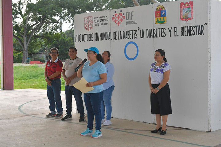 La presidenta honoraria del Sistema DIF Felipe Carrillo Puerto, María del Carmen Solís Sánchez, encabezó las actividades conmemorativas del Día Mundial de la Diabetes en la comunidad de Chunhuas, dónde destacó la importancia de la prevención y una alimentación saludable.