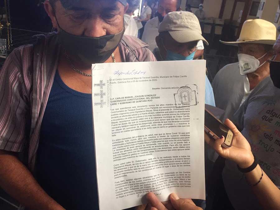 Los dignatarios inconformes afirmaron que llevan año y medio sin recibir los apoyos económicos de 500 pesos mensuales por orden del nuevo general que impuso la funcionaria estatal, agregando que además están quitando a los dignatarios que tienen conocimiento en los centros ceremoniales para imponer a jóvenes sin experiencia, también por instrucciones de la titular del Inmaya.