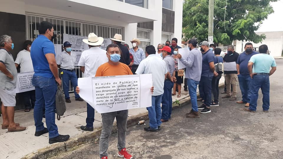 Un grupo de ejidatarios de varias comunidades del sur del estado se manifestaron este miércoles en las instalaciones de la representación de la FONATUR en esta capital para exigir al organismo federal que interceda ante la Secretaría de Comunicaciones y Transportes (SCT) para que se cumpla con el pago por la  expropiación y usufructo de 350 hectáreas de terrenos de la ribera del río Hondo.