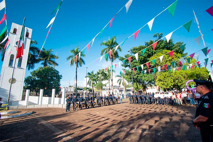 En el parque central, acompañada de colaboradores del Ayuntamiento y estudiantes, la alcaldesa rindió honores al lábaro patrio.