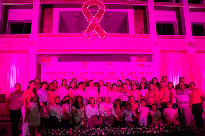 La noche de este viernes, la Presidenta Municipal de Felipe Carrillo Puerto, Mary Hernández, realizó el encendido de lazo rosa por el mes de la lucha contra el cáncer de mama.