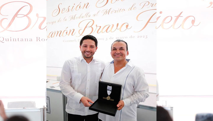 En sesión solemne celebrada en la isla de Cozumel, los poderes Ejecutivo, Legislativo y Judicial entregaron la medalla al Mérito de Protección Ecológica “Ramón Bravo Prieto” al abogado ambientalista José Luis Funes Izaguirre, en reconocimiento a sus acciones para engrandecer el nombre del Estado de Quintana Roo en el campo de la investigación, protección o preservación de los ecosistemas marinos.