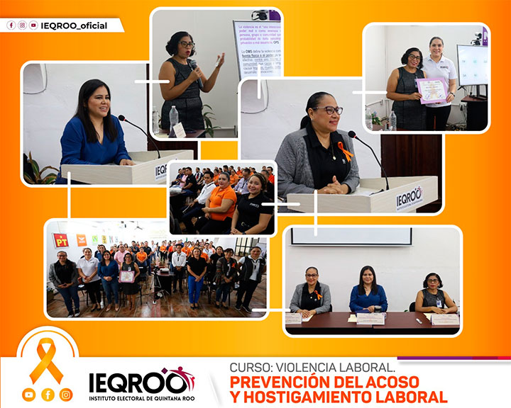 El Instituto Electoral de Quintana Roo (IEQROO) a través del Comité de Igualdad Laboral y No Discriminación, que preside la Consejera María Salomé Medina Montaño, organizó el curso: “Violencia laboral. Prevención del acoso y hostigamiento laboral”, con el objetivo de prevenir y erradicar la violencia al interior del Instituto, al considerar que todas y todos, en algún momento pudimos ser víctimas o ejercimos este tipo de violencia. Evento realizado en la sala de sesiones del Instituto.