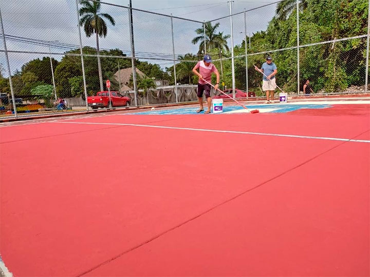 Dijo que los trabajos que se realizan constan de limpieza de los alrededores, aplicación de pintura en las canchas de volibol, basquetbol y la delimitación de las líneas reglamentarias.