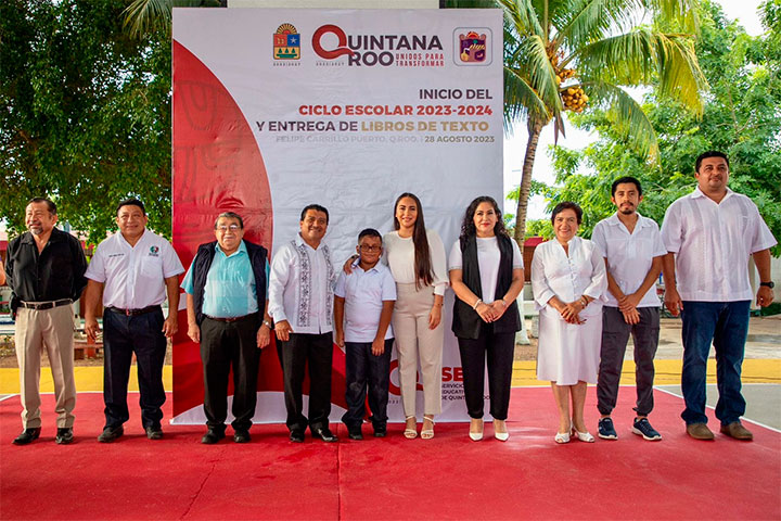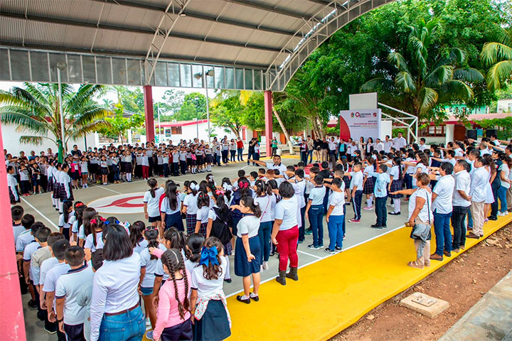 En un acto cívico que tuvo lugar en la cancha deportiva de la Escuela Primaria Benito Juárez, la presidenta municipal Mary Hernández dio la bienvenida a más de 20 mil alumnos que regresaron a las aulas de nivel básico, marcando el inicio del ciclo escolar 2023-2024 en el municipio de Felipe Carrillo Puerto.