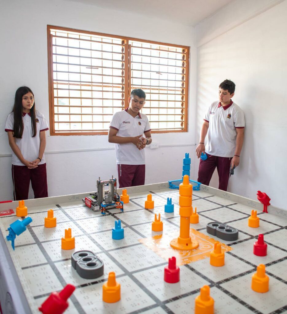 “Hoy hacemos historia en la educación básica de Quintana Roo al consolidar el primer centro STEM en el nivel de telesecundaria, en beneficio de 142 alumnas y alumnos, que se complementa con la valiosa donación de herramientas tecnológicas: kits de robótica, tabletas, lentes 3D y plataformas para aprender programación que hoy estamos entregando”, subrayó.