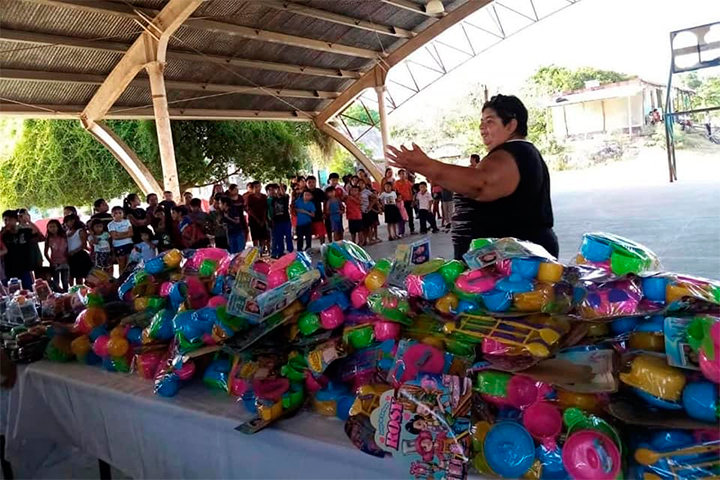 Mary Hernández apapacha con regalos a niñas, niños y mamás