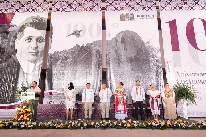 En una ceremonia cívica de profunda resonancia histórica y social, llevada a cabo en el Teatro de la Ciudad, la Presidenta Municipal Mary Hernández lideró la conmemoración del 100 aniversario luctuoso de Felipe Carrillo Puerto.