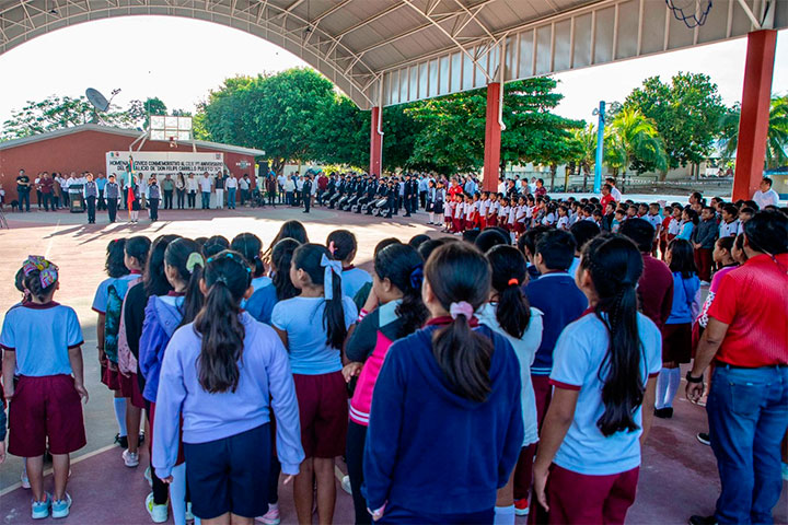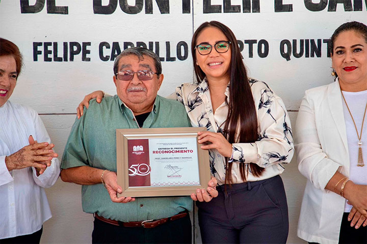 La Presidenta Municipal Mary Hernández encabezó el homenaje cívico conmemorativo del 149 aniversario del natalicio de Felipe Carrillo Puerto. El evento tuvo lugar en las instalaciones de la escuela primaria que lleva el nombre del insigne mexicano y que también festejó el 45º aniversario de su fundación.