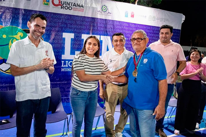 La presidenta municipal Mary Hernández encabezó la ceremonia de premiación y clausura de la Liga Estudiantil Municipal III Edición, organizada por el Tecnológico Nacional de México campus Felipe Carrillo Puerto y el ayuntamiento a través del Consejo de la Juventud y el deporte municipal (COJUDEM).