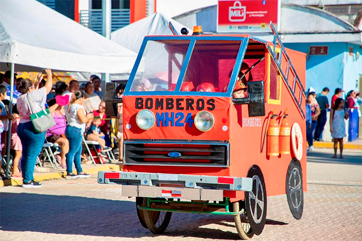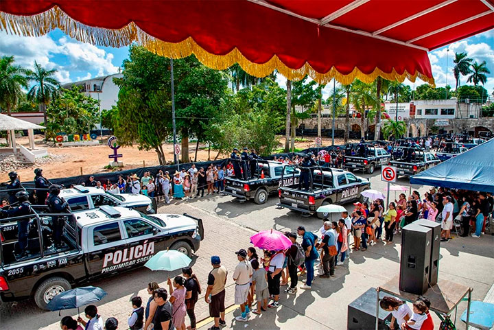 El clímax del desfile estuvo marcado por la participación de las nuevas unidades de la dirección de Seguridad Pública, Tránsito y Bomberos, así como de instituciones como la Cruz Roja, la Comisión Nacional de Emergencia, la Guardia Nacional y el Club de la Asociación de Charros de Felipe Carrillo Puerto, quienes cerraron el evento con un broche de oro, destacando el espíritu de unidad y servicio en la comunidad.