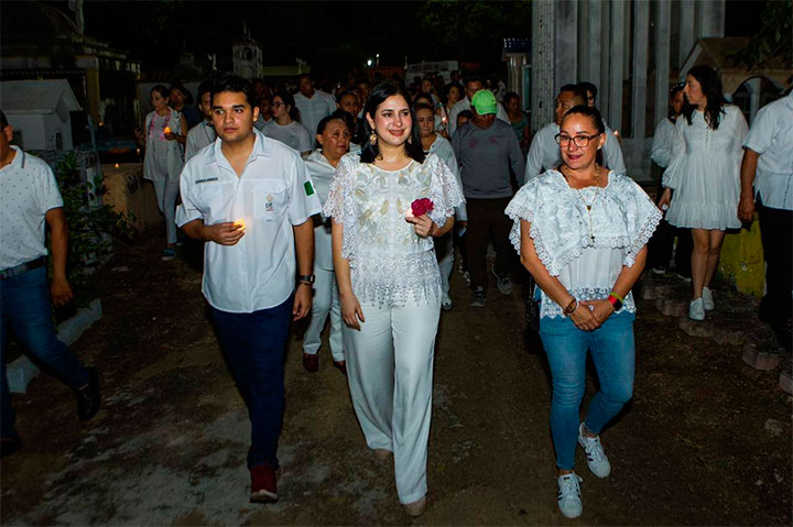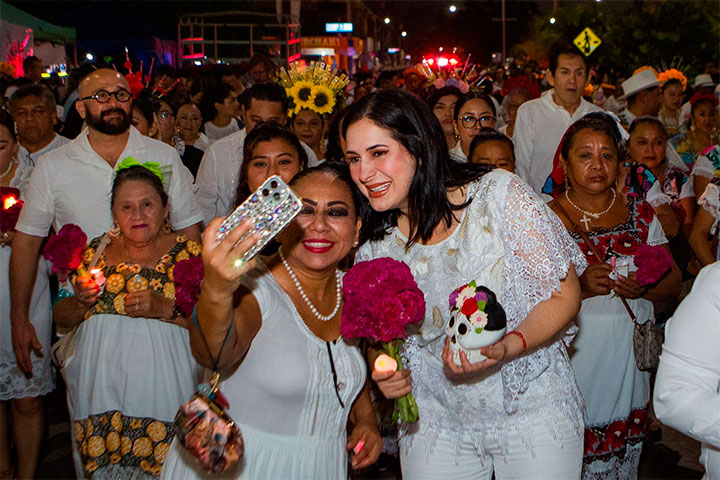 “Nuestro objetivo es que las familias de Solidaridad se integren a estas celebraciones, porque forman parte de nuestras tradiciones y de nuestra cultura ancestral, pero también que se sumen los turistas que vacacionan en nuestro destino, como lo estamos viendo en este recorrido”, comentó la Alcaldesa, quien estuvo acompañada por la secretaria de Gobierno de Quintana Roo, Cristina Torres.