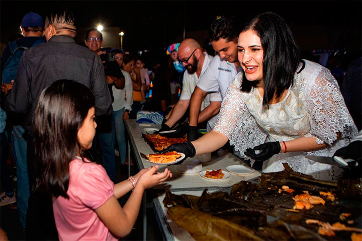 Más tarde, la Presidenta Municipal y la Secretaria de Gobierno se trasladaron a Villas del Sol, donde cientos de personas se reunieron para presenciar un nutrido programa cultural y artístico que organizó el Instituto Municipal de la Cultura y las Artes (IMCAS), además de degustar el tradicional pib que el DIF Solidaridad ofreció de manera gratuita.