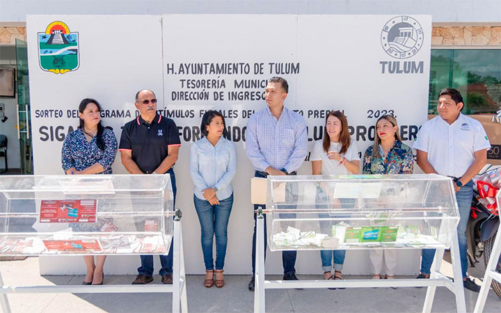 El Ayuntamiento de Tulum entregó motocicletas y televisores a los contribuyentes que pagaron puntualmente su impuesto predial y que tuvieron derecho a participar en el sorteo “Sigamos Transformando un Tulum Próspero”, el cual permitió una recaudación histórica este año.
