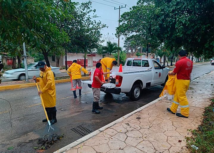 Ante las intensas lluvias en la región, la Coordinación de Protección Civil, dirigida por Ángel Sulub Hernández, ha desplegado brigadas de limpieza en diversos puntos de la ciudad de Felipe Carrillo Puerto.