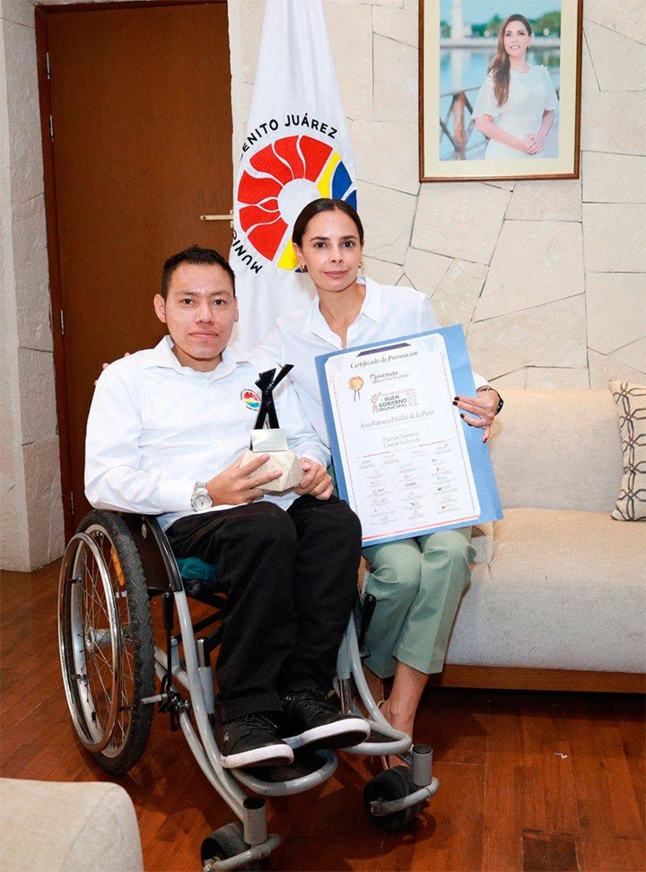Este premio fue entregado a la Presidenta Municipal, Ana Patricia Peralta, por parte de José Ricardo Velázquez Prudente, director para la Inclusión de las Personas con Discapacidad del Ayuntamiento de Benito Juárez, quien lo recibió el pasado 03 de febrero en la ceremonia de entrega del Premio Nacional al Buen Gobierno Municipal 2022, realizado en la Ciudad de México.