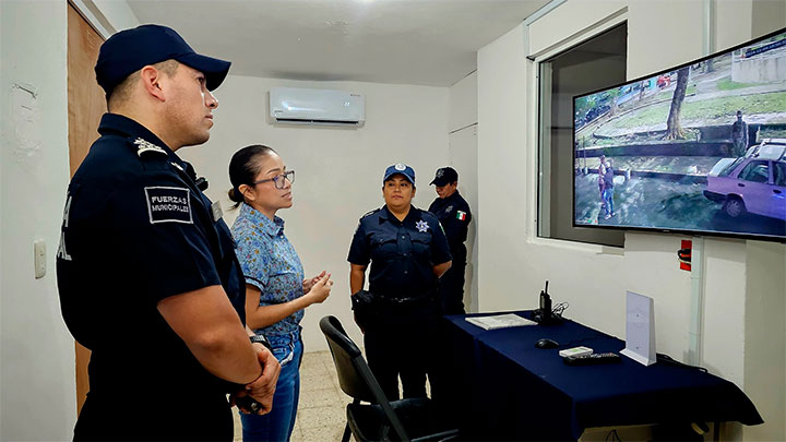Cuenta también con un sistema de monitoreo inteligente con cámaras de videovigilancia en distintos puntos; torreta para prevención y disuasión durante las noches, botón de pánico enlazado al C4 para brindar auxilio y atención en tiempo real, un vehículo policial, entre otras herramientas que permitirán la reacción inmediata ante cualquier situación de auxilio o emergencia, pero principalmente ayudarán a la prevención del delito y reconstrucción del tejido social.