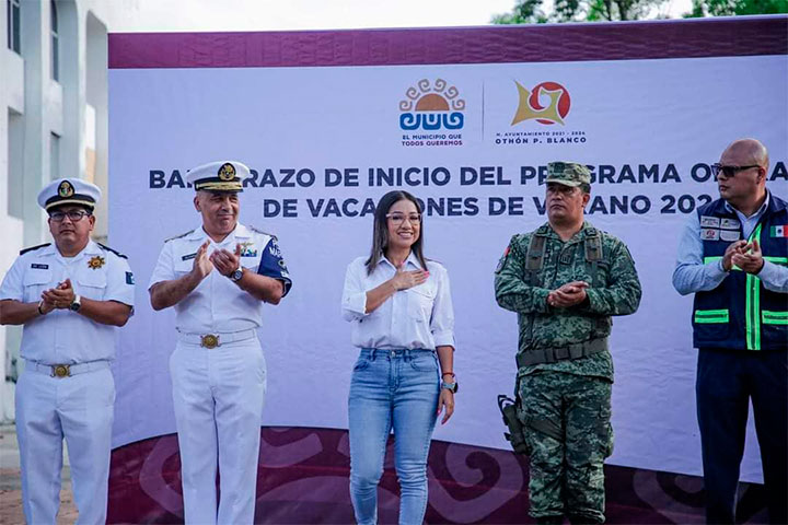 Con un estado de fuerza de más de 120 elementos de diferentes instituciones federales, estatales y municipales, este día se puso en marcha el Operativo de Seguridad de las Vacaciones de Verano 2024 en el municipio de Othón P. Blanco, cuyo banderazo inicial estuvo encabezado por la presidenta municipal Yensunni Martínez Hernández.