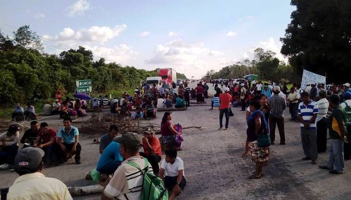 Más de un centenar de habitantes de la comunidad de Mayabalam en el municipio de Bacalar bloquearon desde el medio día ambos carriles del tramo carretero Bacalar-Felipe Carrillo Puerto, en protesta por el presunto despojo de unos terrenos donados por el gobierno.