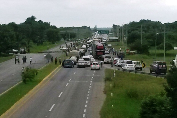 En una acción que ya se está haciendo costumbre en el sur del estado, un grupo de habitantes de la comunidad de Carlos A. Madrazo y poblados cercanos bloquearon por un lapso de casi tres horas los tramos carreteros  Chetumal-Escárcega y Chetumal-Cancún para exigir la liberación de tres pobladores acusados de linchar y asesinar a un presunto ladrón el pasado 4 de junio.