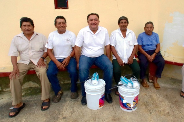 Ysmael “Mayito” Moguel se reunió con integrantes del Consejo Maya este fin de semana para entregarles un donativo de pintura para remodelar el templo católico, ya que el próximo 29 de Noviembre se dan inicio las festividades en la iglesia de Kantunilkin.
