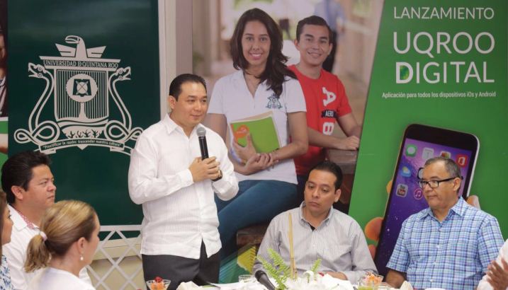 La Universidad de Quintana Roo dio un salto tecnológico con el lanzamiento este lunes 23 de mayo de 2016 de la plataforma “UQRoo Digital”, la cual ofrecerá 12 productos tecnológicos de innovación que colocarán a la Máxima Casa de Estudios a la vanguardia nacional e internacional en materia de tecnología educativa, afirmó el Rector, Ángel Rivero Palomo, en la presentación de esta modernización de la página oficial, en la Sala de Rectores.