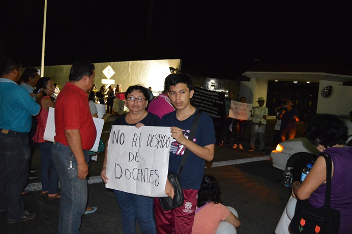 El pasado fin de semana maestros en proceso de baja por negarse a presentar la evaluación docente acompañados de padres de familia y alumnos marcharon desde las oficinas de la Secretaría de Educación y Cultura hasta la Casa de Gobierno en Chetumal, para exigir que no sean despedidos.