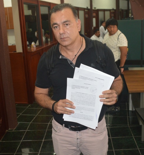 Acompañado de su abogado Leonardo Kumul Salazar, el empresario entregó ante la Oficialía de Partes del Congreso local los oficios, anexando supuesta documentación probatoria de los hechos que les imputa a los 26 ex servidores públicos.